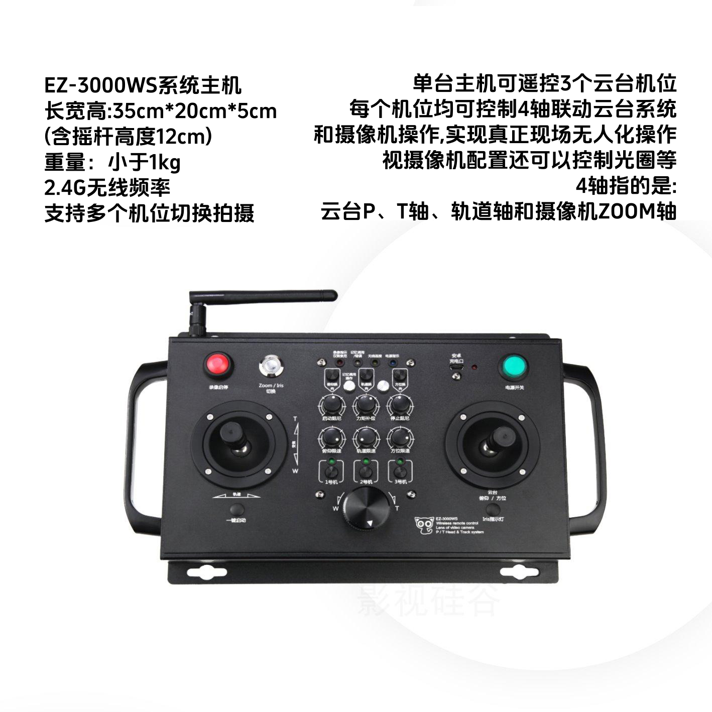 专业多机位无线云台控制系统/融媒体演播中心/直播活动/学校/酒吧/会议/寺庙等解决方案 专业直播设备 21年11月1日 编辑 本系统是一套功能强大的多机位无线摄像系统,以最大程度减小对现场机位摄像师的依赖为设计目标,也是机器换人思路主导下的创新产品。电控云台集成摄像机无线推拉焦控制功能,适配目前主流各型摄像机型号,控制内容包括:Zoom推拉焦、光圈等。 专业多机位无线云台控制系统/融媒体演播中心/直播活动/学校/酒吧/会议/寺庙等解决方案 专业多机位无线云台控制系统/融媒体演播中心/直播活动/学校/酒吧/会议/寺庙等解决方案 ¥5200 ¥5200 库存:200 已售:20 立刻购买 本系统结合一体导切台可以搭建成最少人数摄制团队,主要应用现场无人化多机位节目摄制、演播厅、会议、酒吧、餐吧、教育互动课程摄制、音乐娱乐场所,民间体育活动现场拍摄等。
