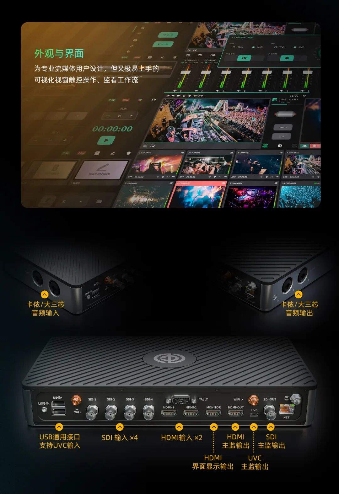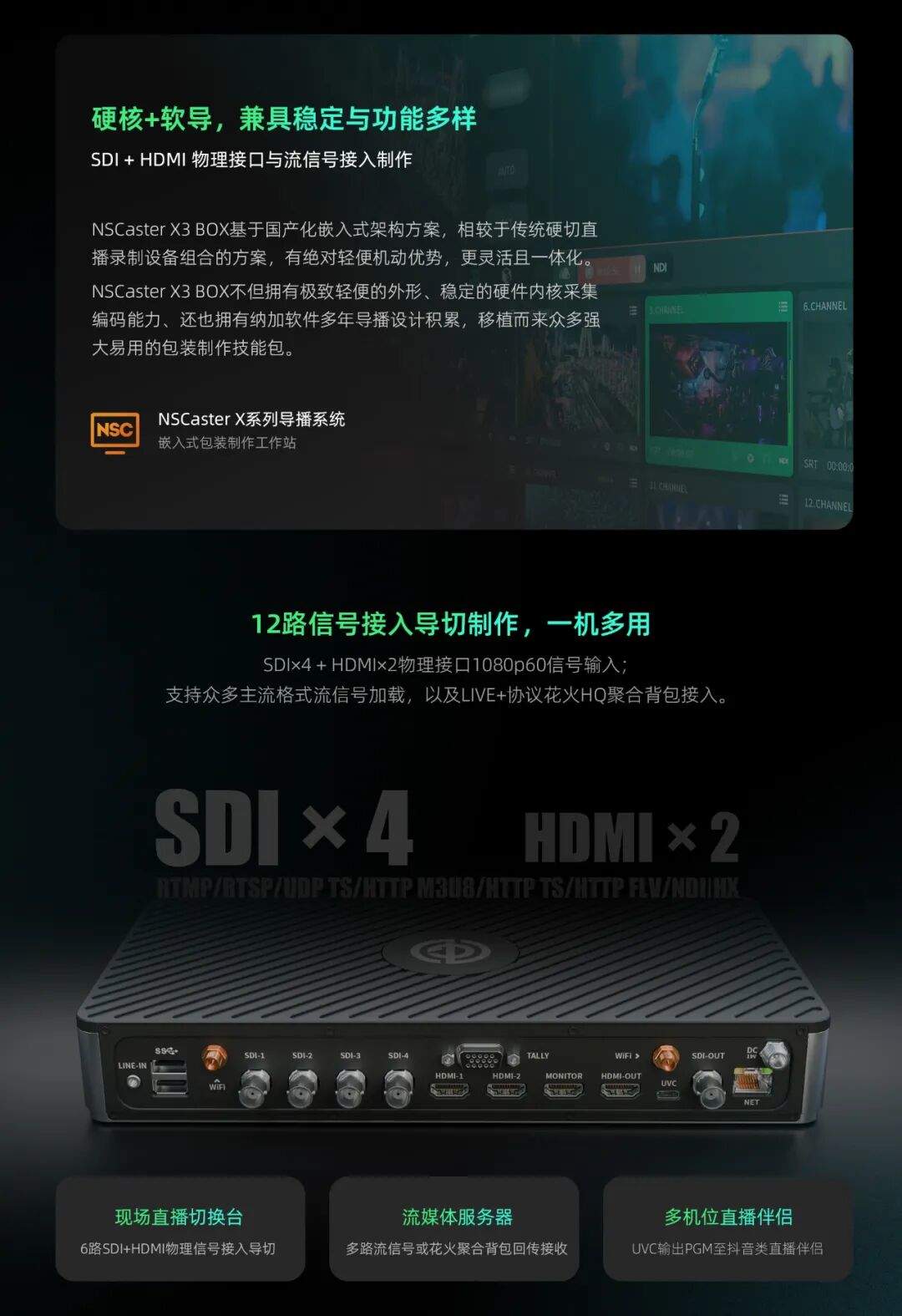 新品上市/纳加花火X3Box直播直播盒子/4SDI+2HDMI,支持UVC,12路信号输入,支持多路拉流,台历接口