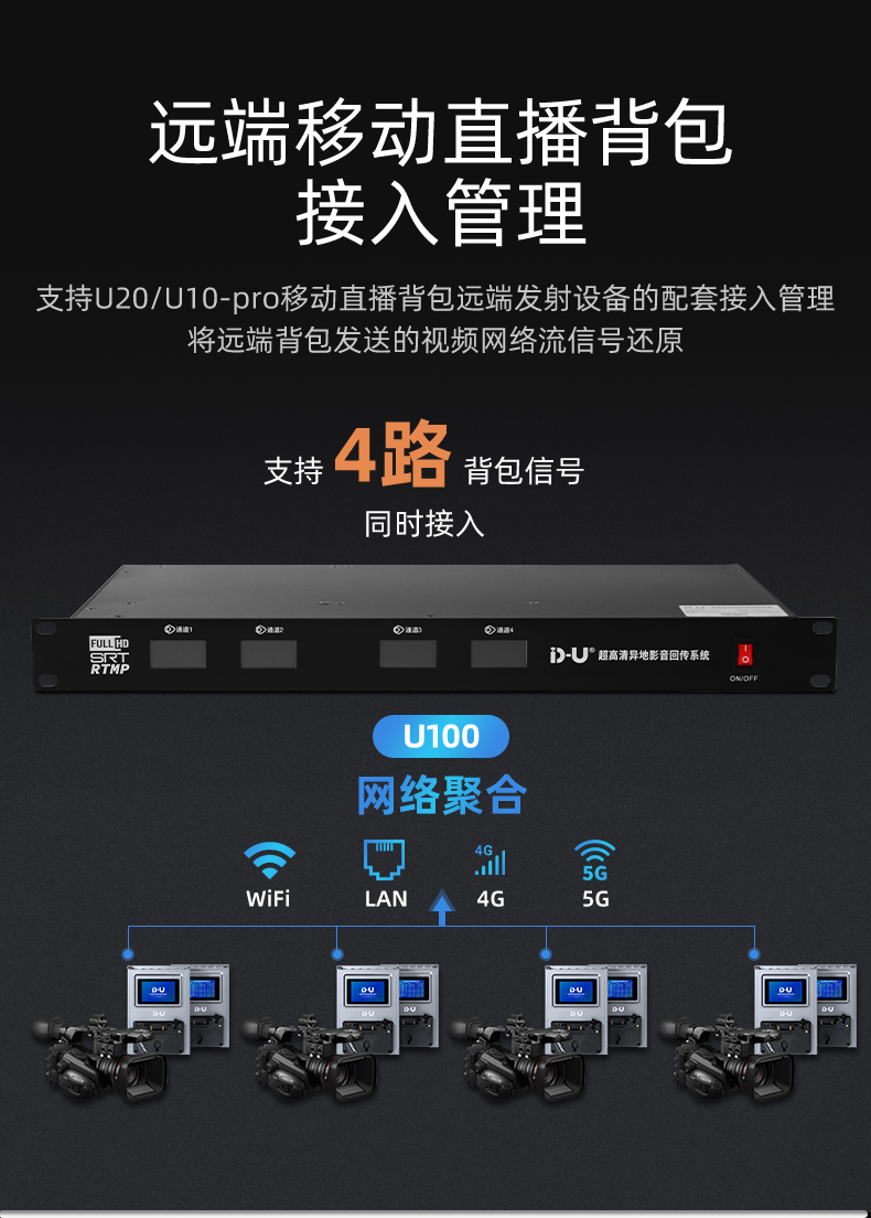新品上市/U100高清异地回传系统服务器/硬件导播台接收移动背包信号 23年8月15日 编辑 新品U20专业4K/5G移动直播背包!超清音视频瞬间回传就选它[出售] ¥14800 ¥14800 库存:193 已售:16 人气:3.9k